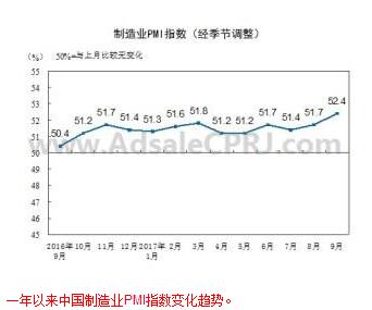 9月份,中國制造業(yè)PMI為52.4%,連續(xù)兩個月上升,達到2012年5月以來的最高點,中國制造業(yè)繼續(xù)保持穩(wěn)中向好的發(fā)展態(tài)勢,擴張步伐有所加快。