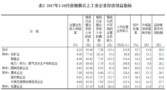 1-10月份,規模以上工業企業實現主營業務收入100.1萬億元,同比增長12.4%;發生主營業務成本85.5萬億元,增長12%;主營業務收入利潤率為6.24%,同比提高0.55個百分點。