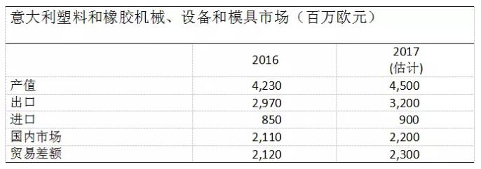 根據意大利塑料橡膠加工機械和模具行業(yè)協(xié)會(Amaplast)研究中心對2017年1-9月ISTAT外貿數據的分析,與2016年同期相比,進口增長12%,出口增長16%。貿易順差增幅超過17億歐元,增加了17個百分點。